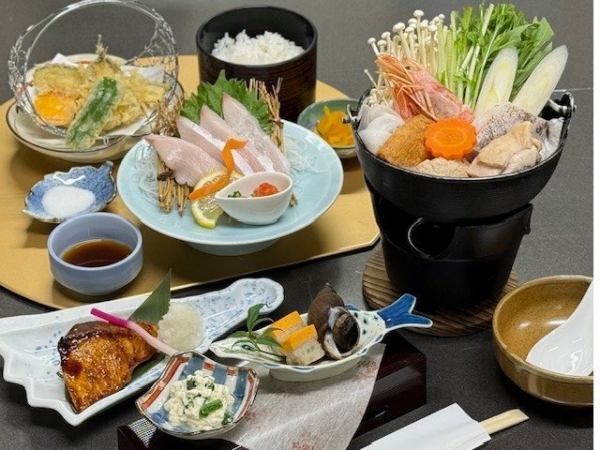 推薦套餐 | 上越的Gotsuo「生魚片,炸Megisu,黑牡蠣貝,Toppeni,小菜,米飯,味噌湯,香」2,500日元(含稅) |